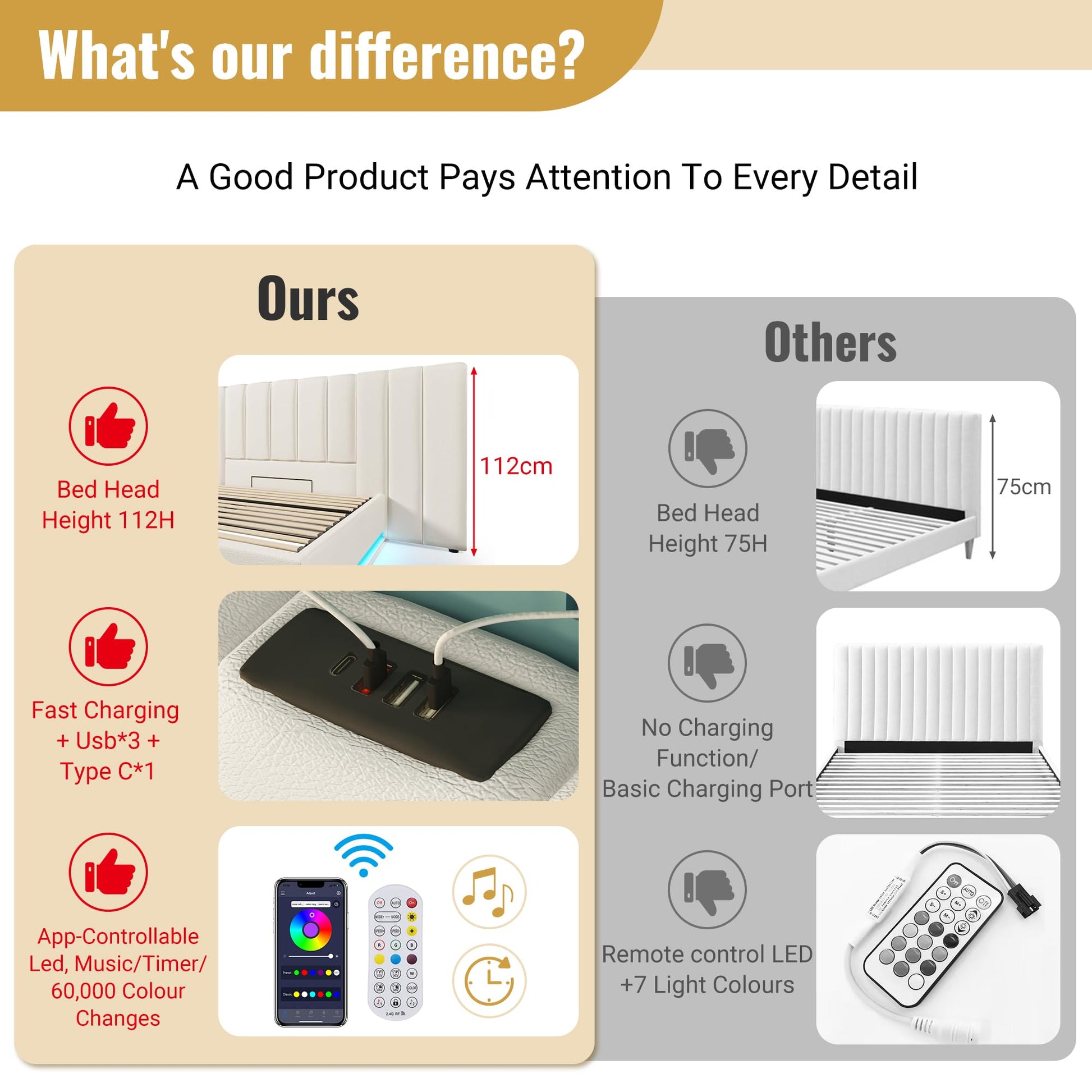 Inhalt des Pakets : Bettgestell+Ladefunktion+LED